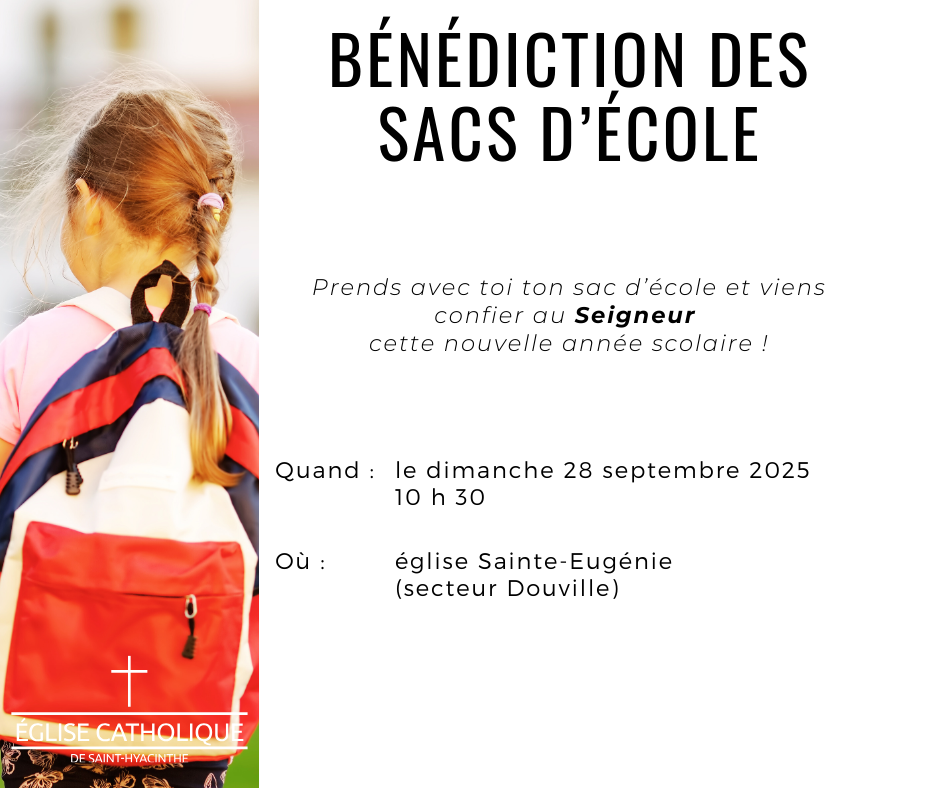Prends avec toi ton sac d'école et viens confier au Seigneur cette nouvelle année scolaire !