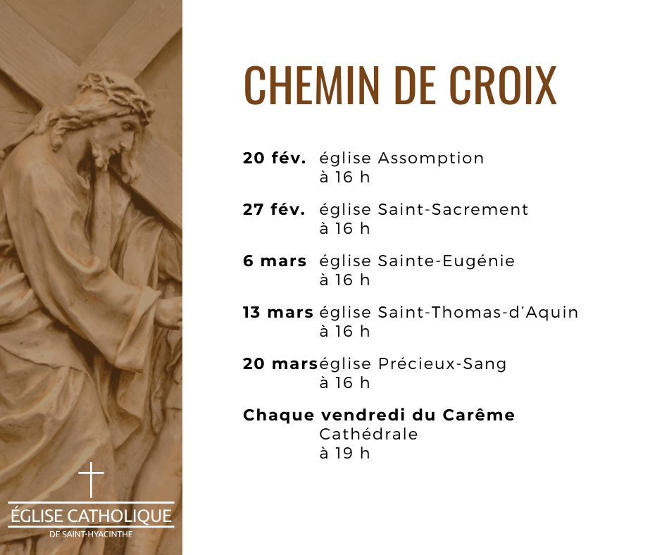 Tous les vendredis du Carême à 19 h : Cathédrale Saint-Hyacinthe-le-Confesseur